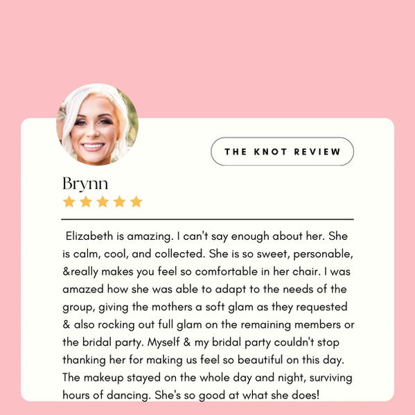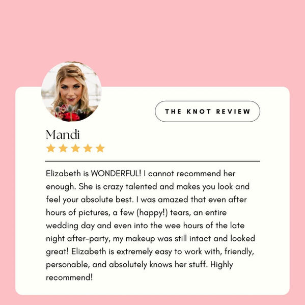 For booking, a signed contract and a separate non-refundable travel fee which acts as a retainer is requested to save the date (not accepting weddings over an hour away from Johnstown, Ohio). This travel fee does not go towards makeup application costs. Fill out the inquiry form below to receive your personalized quote for bridal services. Pricing for day-of bridal makeup services start at $850+ (not including travel fee or bridal preview costs).